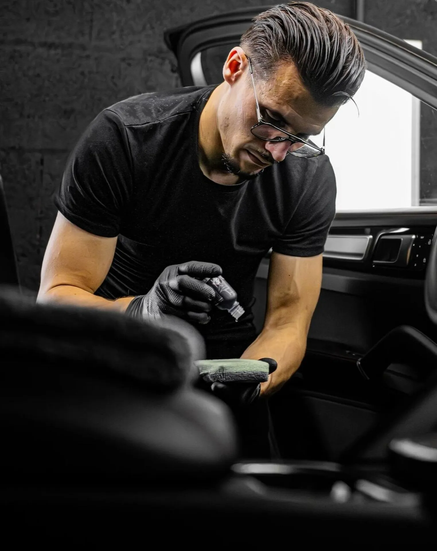 Avant l’application, nous réalisons une préparation complète : lavage approfondi, décontamination chimique et mécanique, puis polissage si nécessaire pour assurer une surface parfaitement propre et lisse. La pose est effectuée manuellement à l’applicateur microfibre, suivie d’un essuyage contrôlé pour éviter tout voile ou trace.